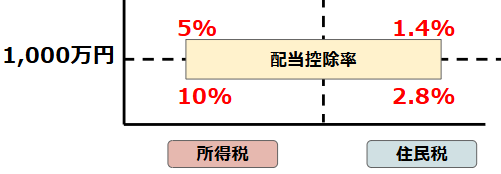| 配当控除 | 総合課税として確定申告をする ×外国株式 1,000万円以下:所得税10% 住民税2.8% 1,000万円超:所得税5% 住民税1.4% |