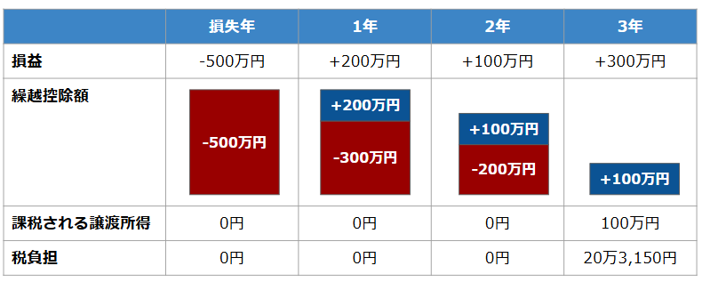| 繰越控除 | その年の翌年以後3年以内の上場株式等に係る譲渡所得の金額及び上場株式等に係る配当所得等の金額から繰越控除できる |