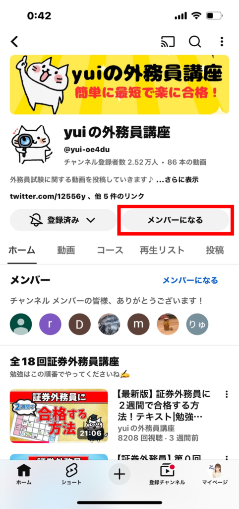 YouTubeメンバーシップとは、チャンネルに月額料金を払うことにより、Yuiの外務員講座の特典を受けることができるシステムのことです。