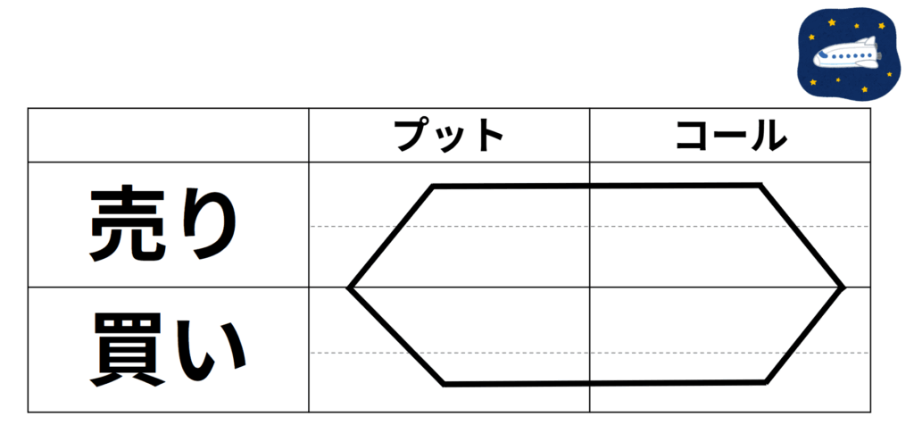 ①コールとプットの図を書く