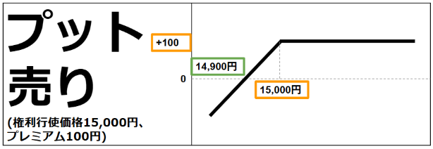 損失は限定、利益無限大 損益分岐点は14,800と15,700の二つ。