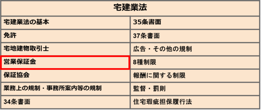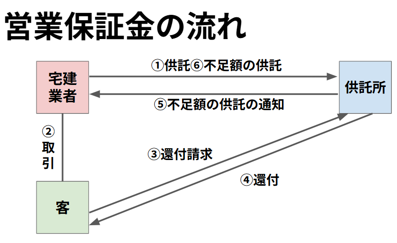 | 営業保証金制度とは | 宅建業者と取引をし損失を被った宅建業者ではない相手方を補償する制度 |