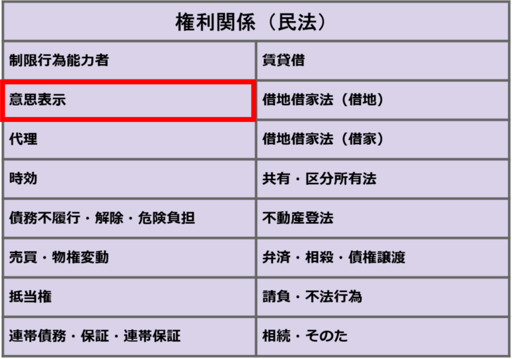 今回は権利関係意思表示の講義を始めます。