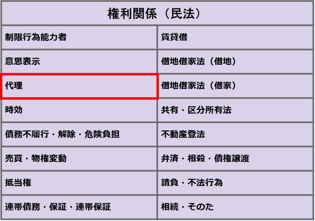 権利関係の学習の順番はこちらになります。